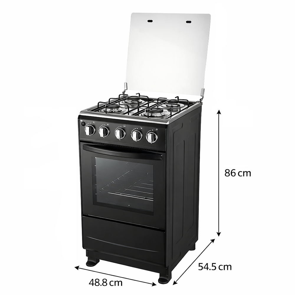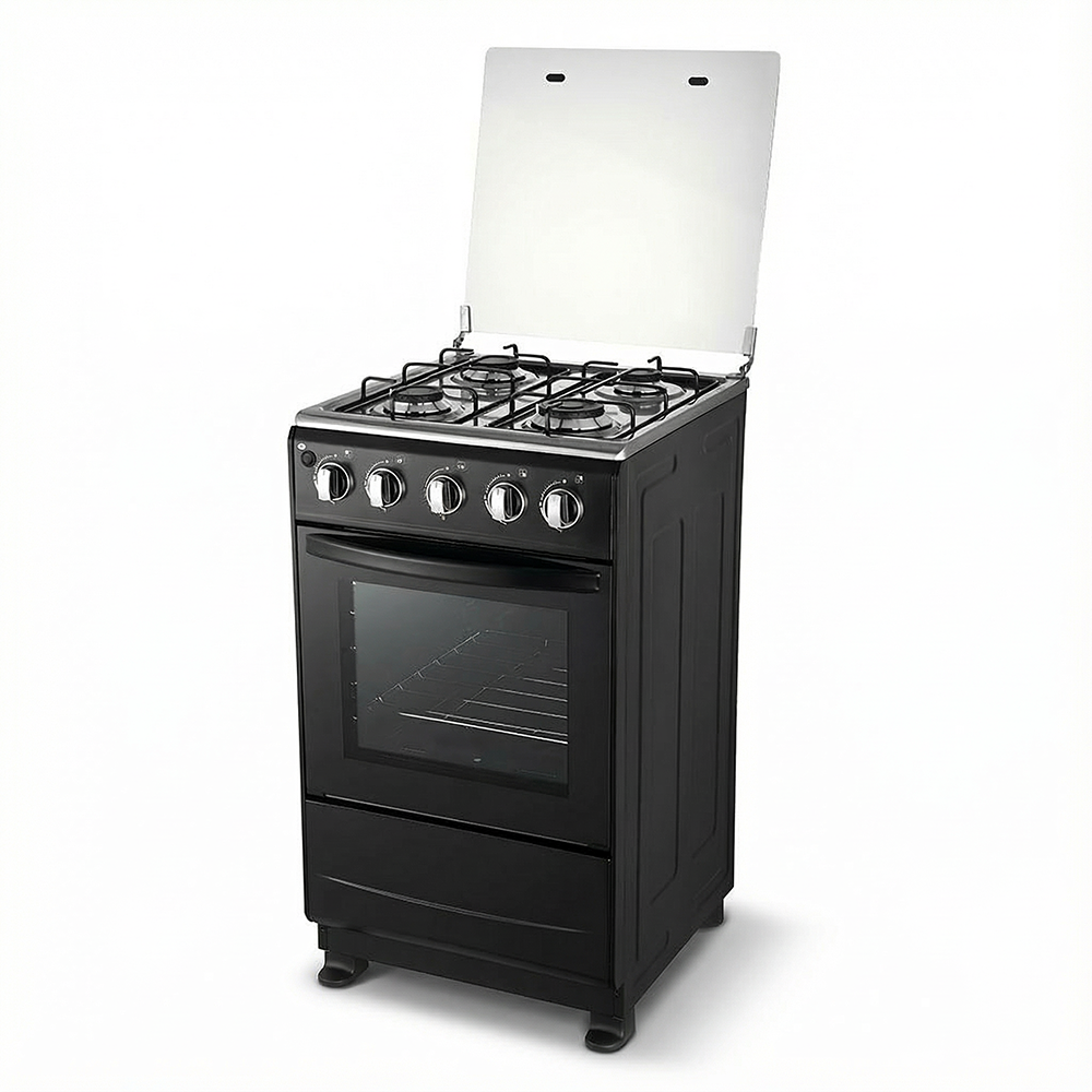 This gas electric cooker delivers the ultimate cooking flexibility. The cooktop utilizes gas for instant, high-heat frying, while the down oven is powered by a 2.0KW electric heating element. Unlike gas ovens, the electric oven provides stable, dry heat, ensuring superior baking results for cakes and pastries within the 55L capacity. This dual fuel stove configuration meets the demands of serious home cooks who require specific heating methods for different dishes.