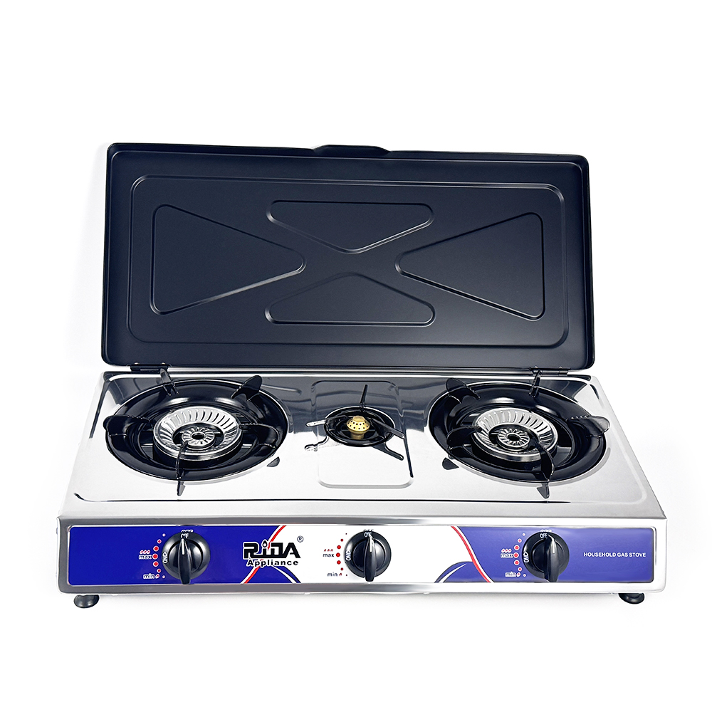 Ideal for families in apartments, townhouses, and rental units. The three burners with different sizes handle complete meal preparation — cook rice, fry vegetables, and simmer soup all at the same time. The dust-proof cover keeps the stove clean between uses.